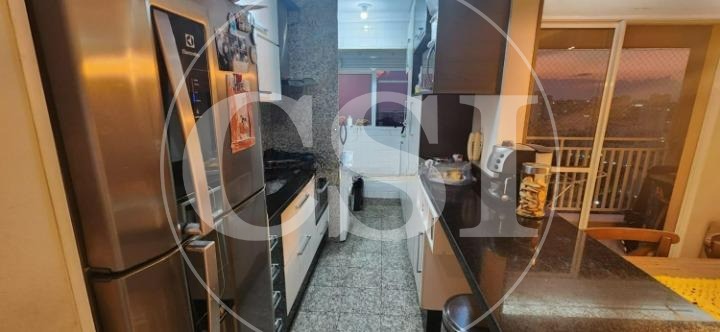 Cozinha americana e área de serviço, ambas com planejados, maximizando o espaço e a funcionalidade.