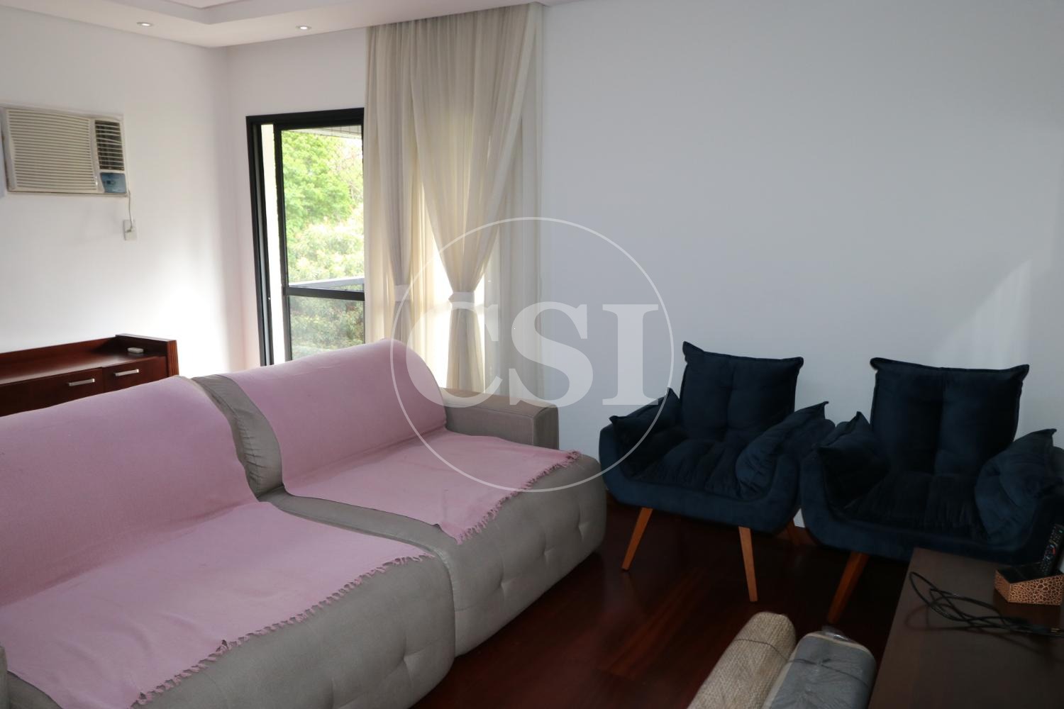 Ar-condicionado na sala, suíte e 1 quarto