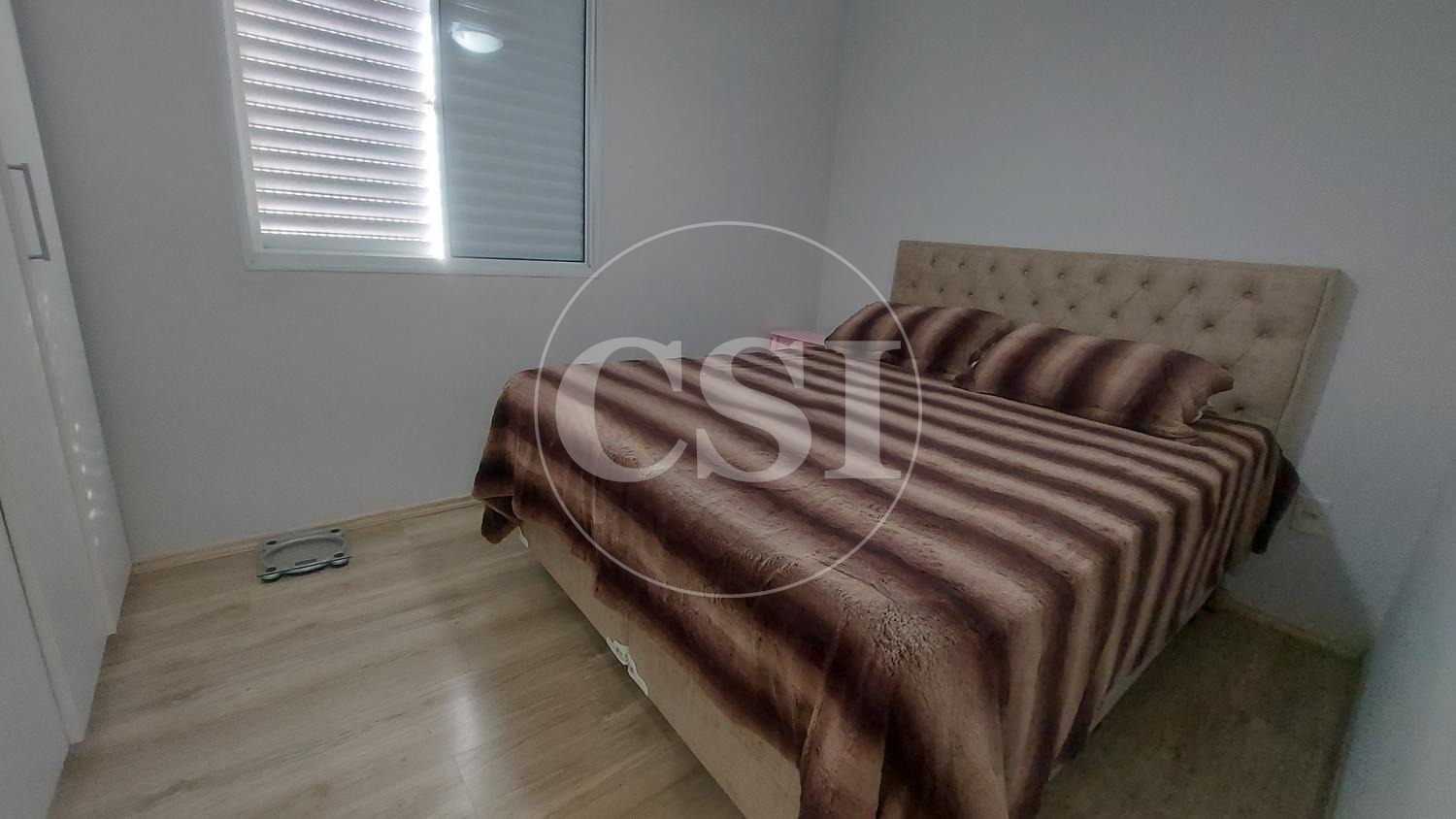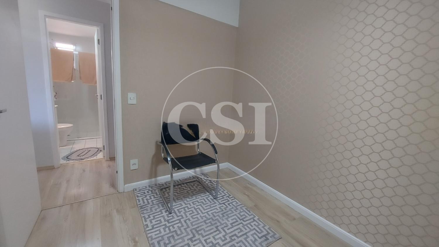 Piso laminado nos quartos e sala