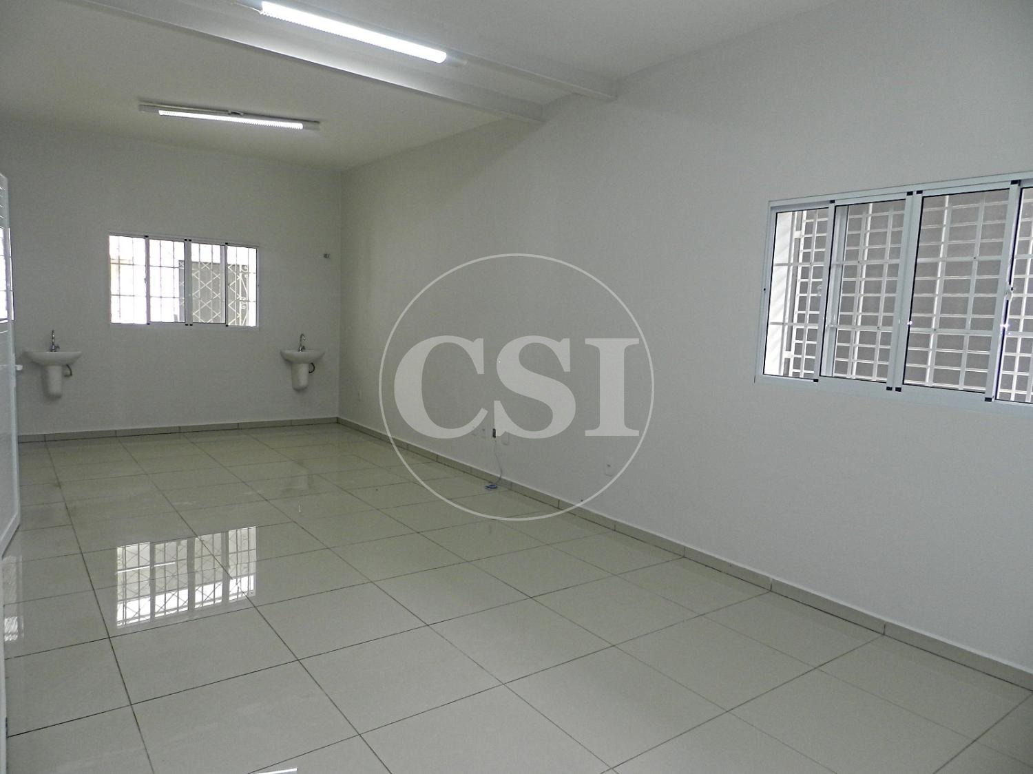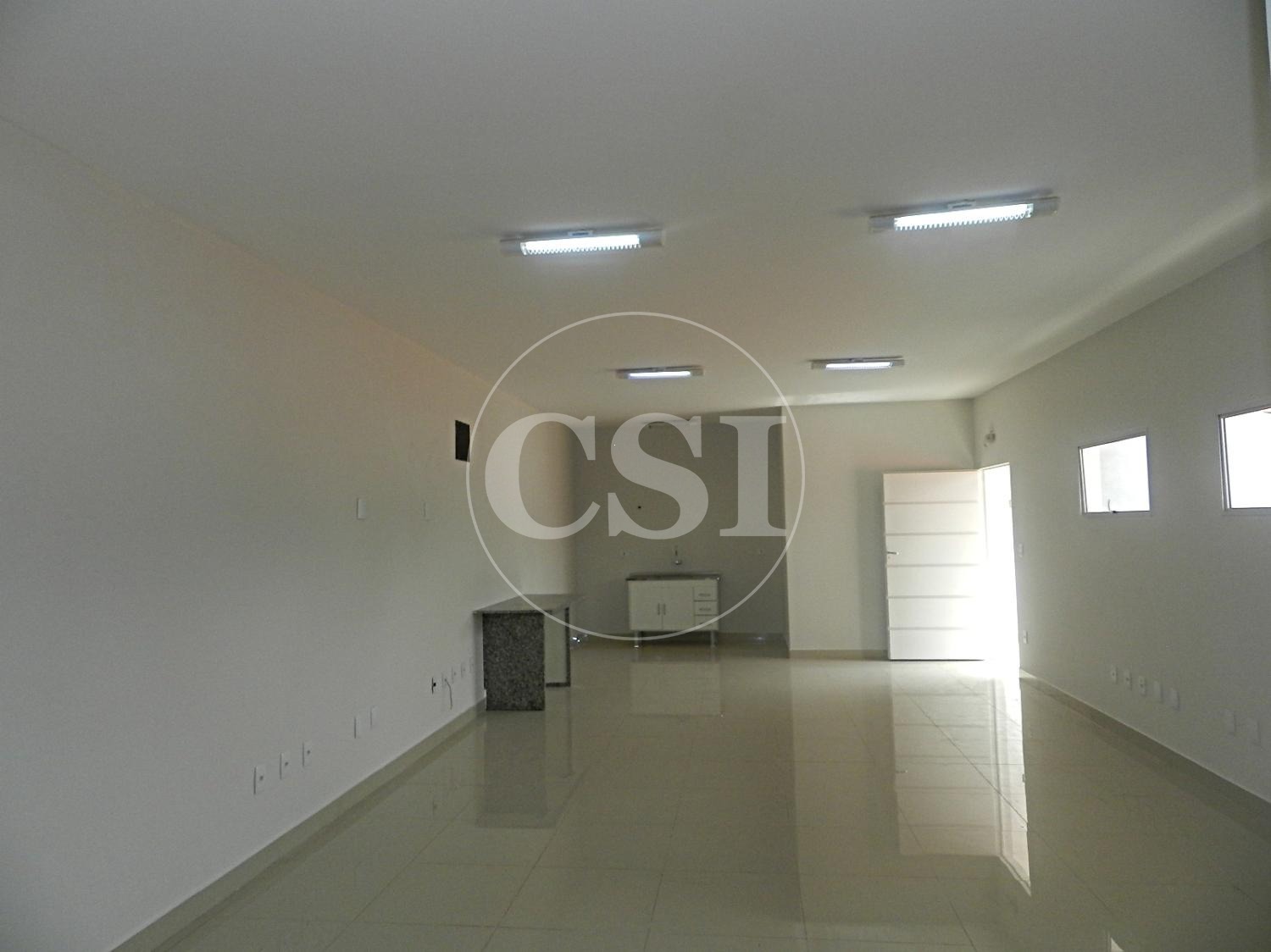 1 sala ampla com 2 pias e 2 acessos