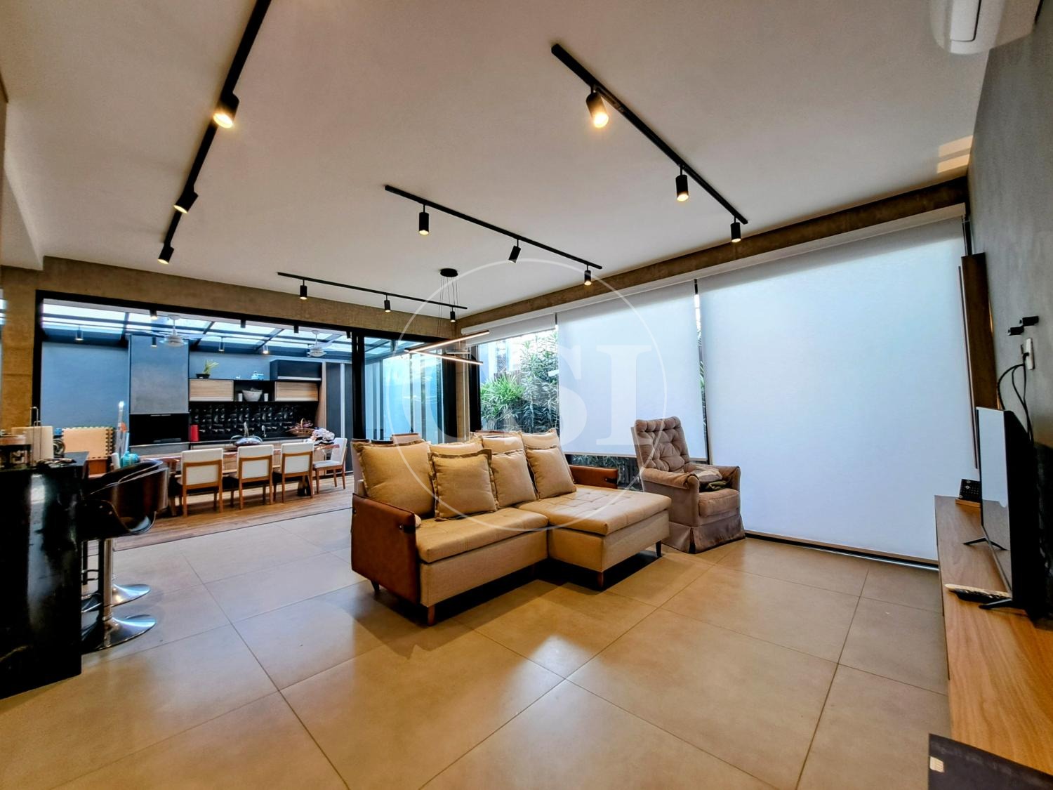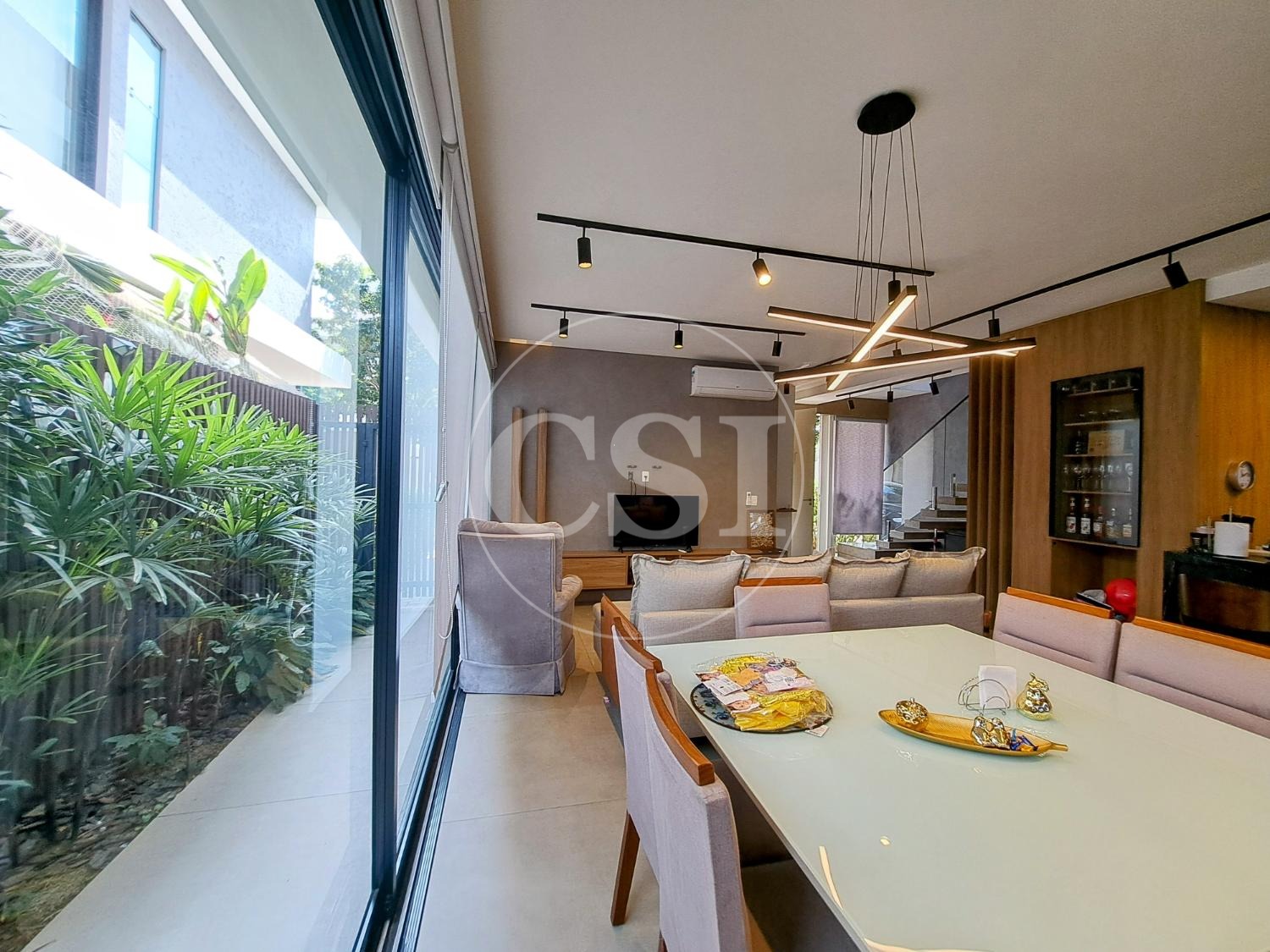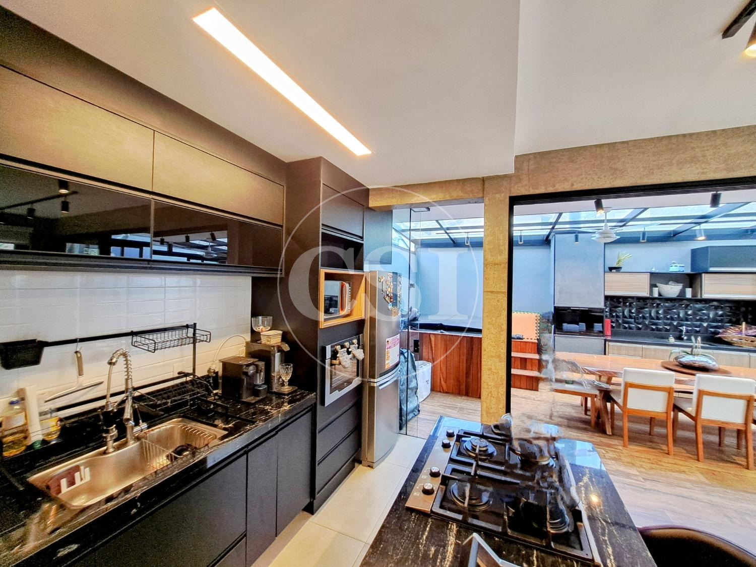 Projeto personalizado e moderno, com ampla sala para 3 ambientes, lavabo, escritório e cozinha americana bem integrada aos demais espaços. Conta com uma linda jacuzzi e um jardim com paisagismo e iluminação, integrado à área de convívio.
