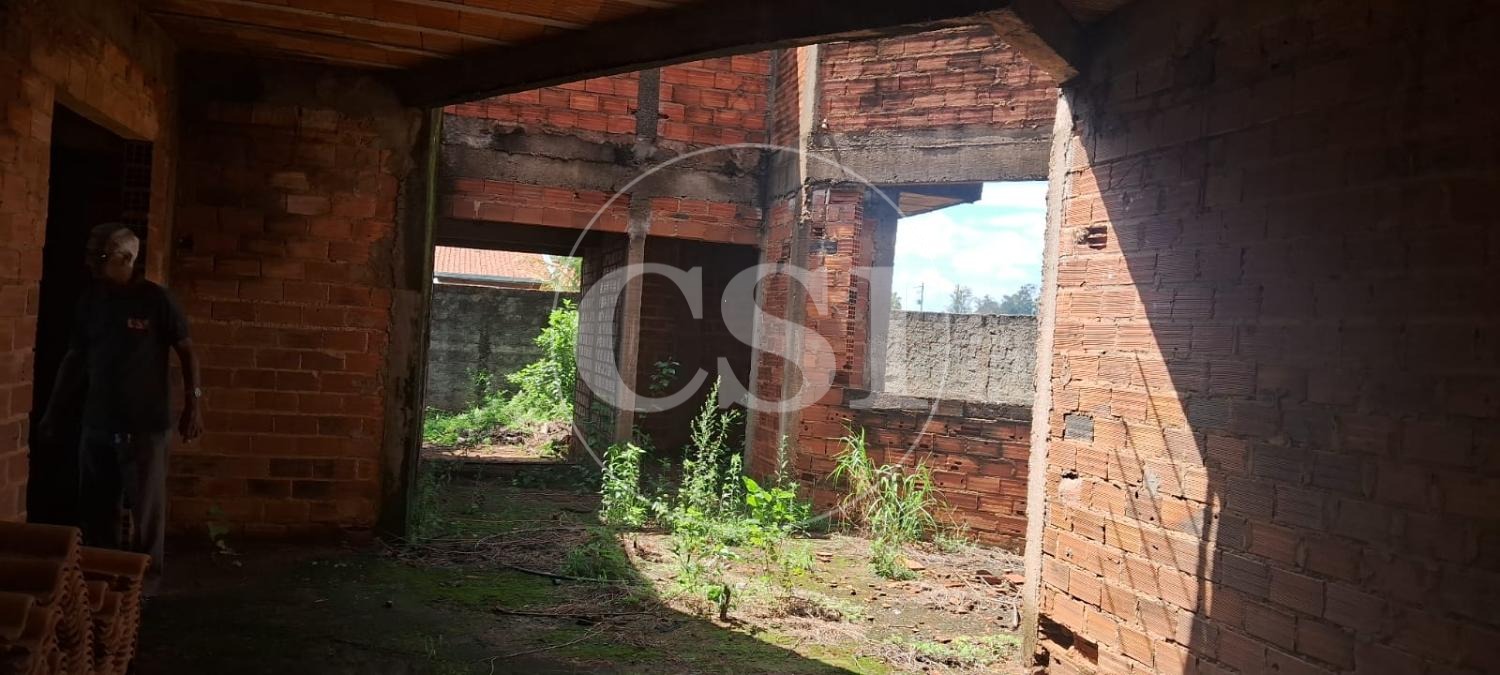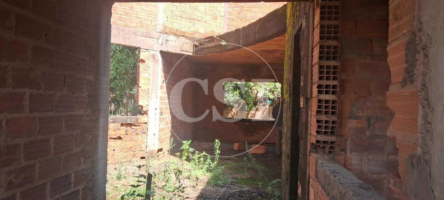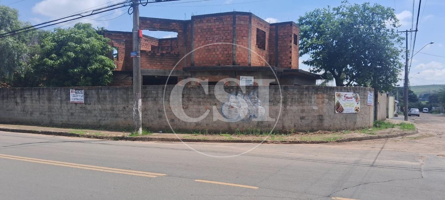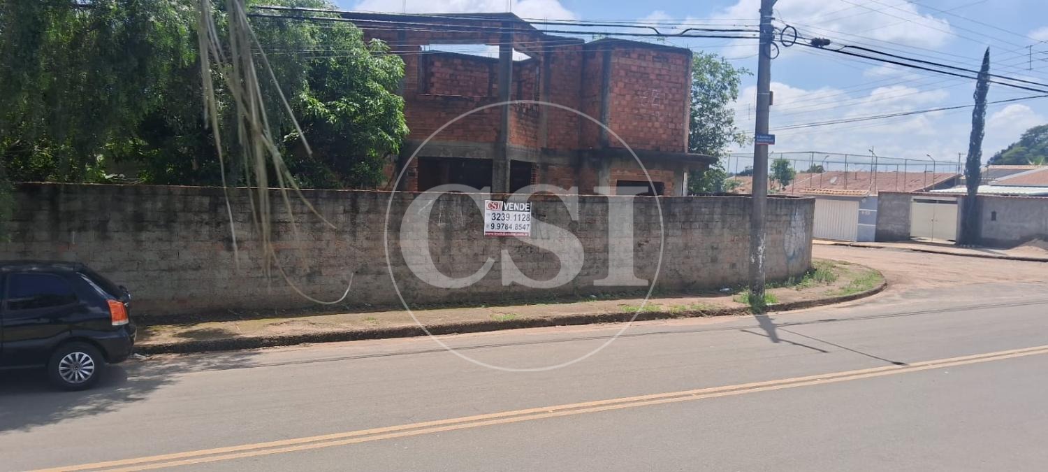 Casa Assobradada inacabada com Edícula contendo 1 quarto, sala, cozinha, área de serviço, garagem coberta no Fundo, com localização privilegiada no Bairro Bosque das Palmeiras, de esquina , contendo 472 m² de Terreno, sendo 16,3 metros de frente.