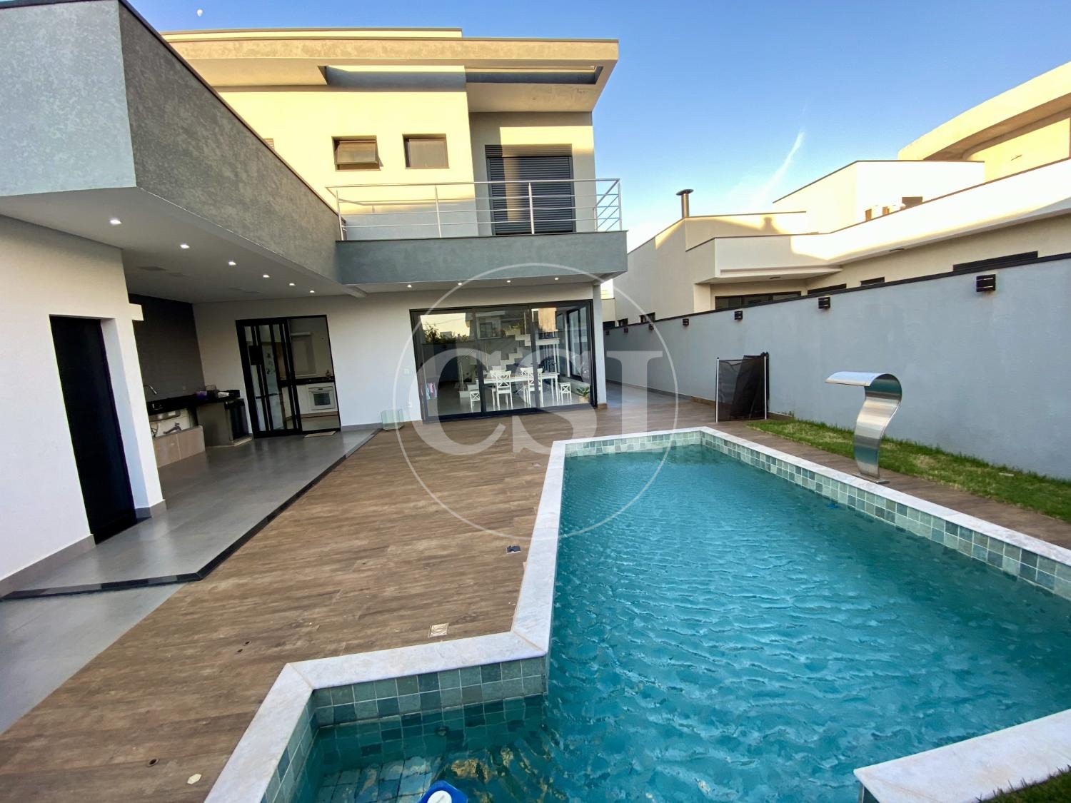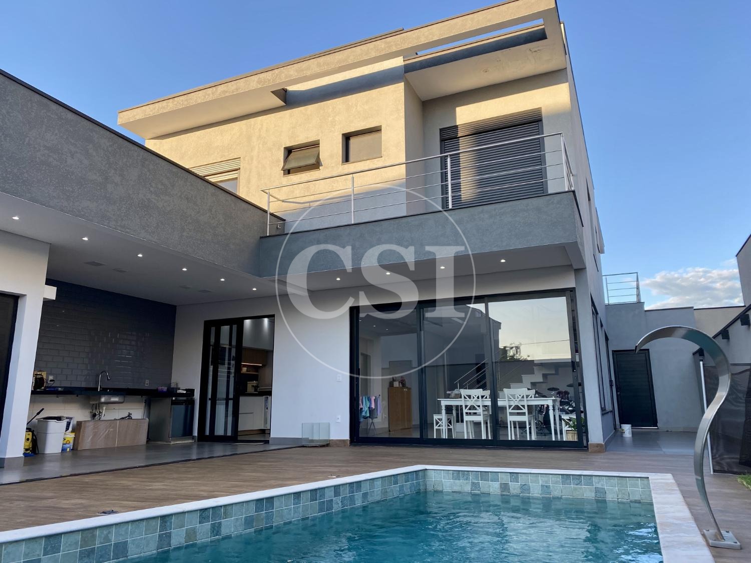 No piso térreo, o ambiente integrado reúne sala de TV, sala de jantar e sala de estar (home), proporcionando um espaço moderno e funcional. A cozinha planejada integrada à área gourmet é ideal para quem busca um imóvel com espaço para receber amigos e família. Conta ainda com lavanderia e despensa, trazendo mais praticidade ao dia a dia. A área gourmet com piscina aquecida é um grande destaque, equipada com churrasqueira, sistema de som e banheiro externo, perfeita para lazer e momentos de convivência. Um diferencial importante para quem procura casa com piscina e área de lazer completa.