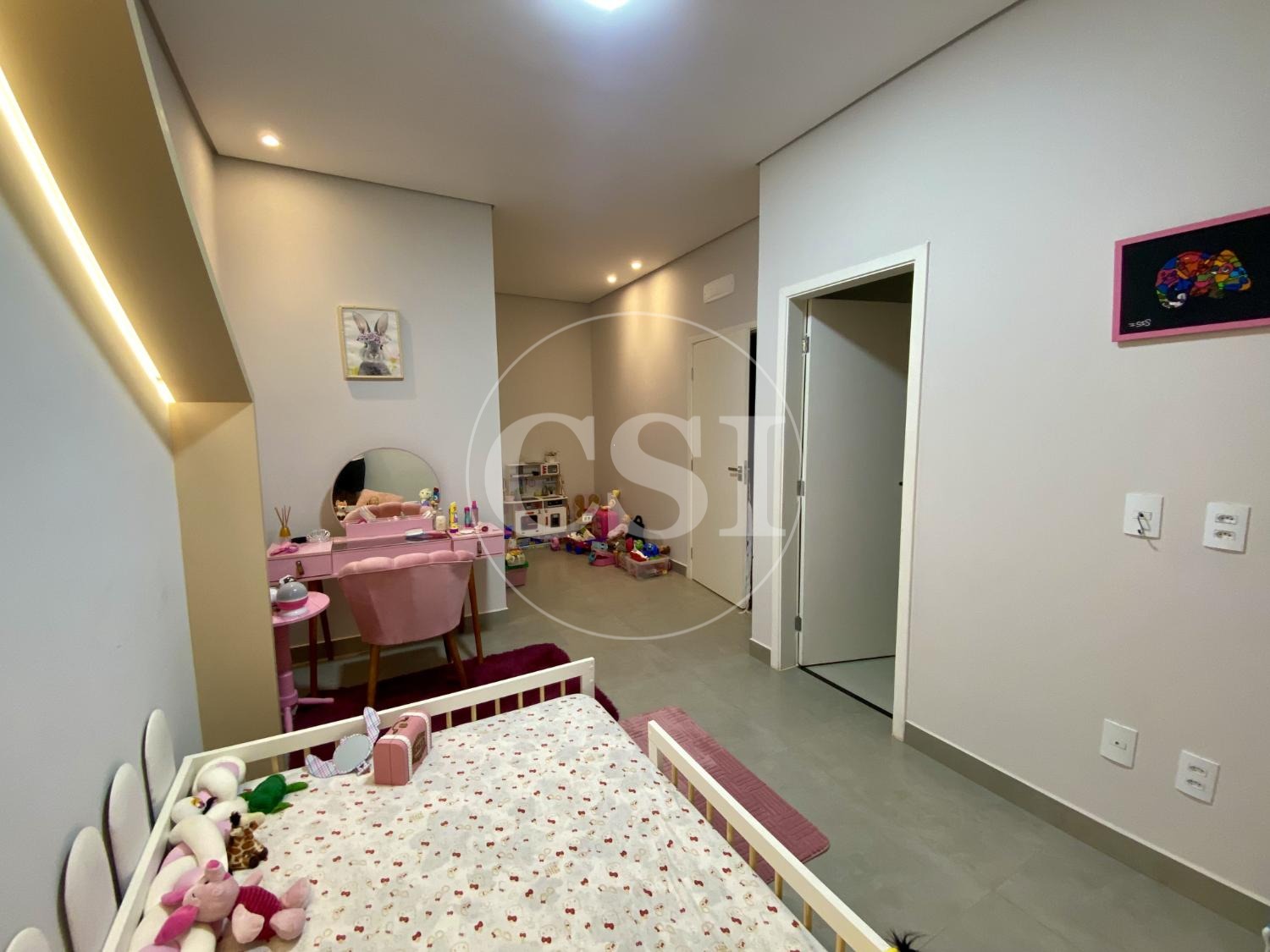 No piso superior, o imóvel possui 3 suítes com varanda, sendo uma suíte máster com closet amplo, garantindo mais privacidade e conforto — perfeito para famílias que valorizam espaço e qualidade de vida.