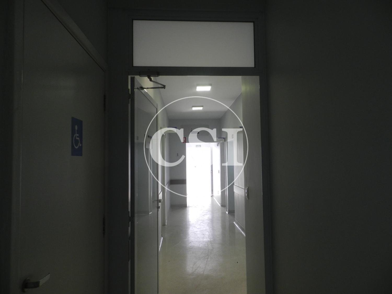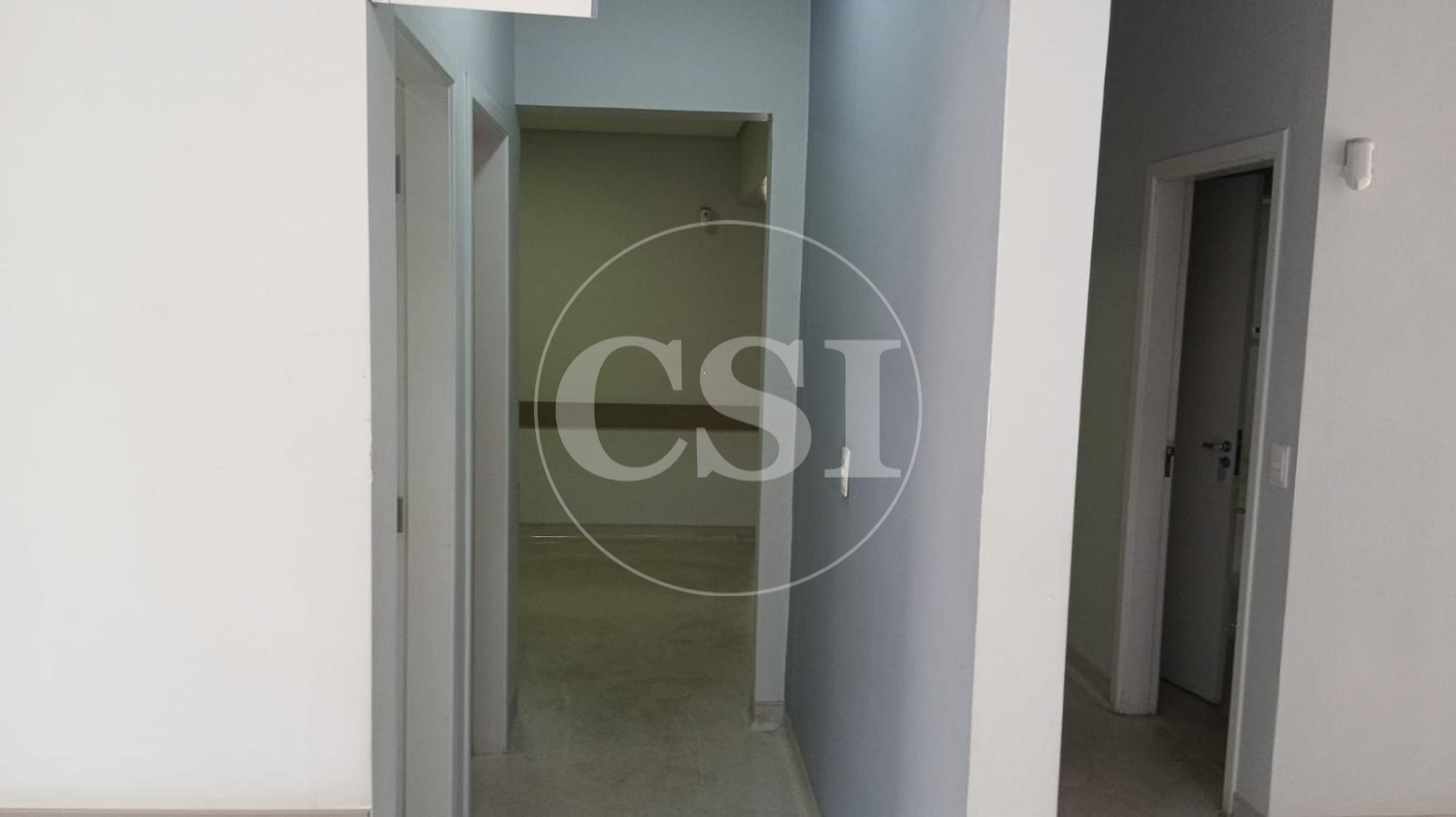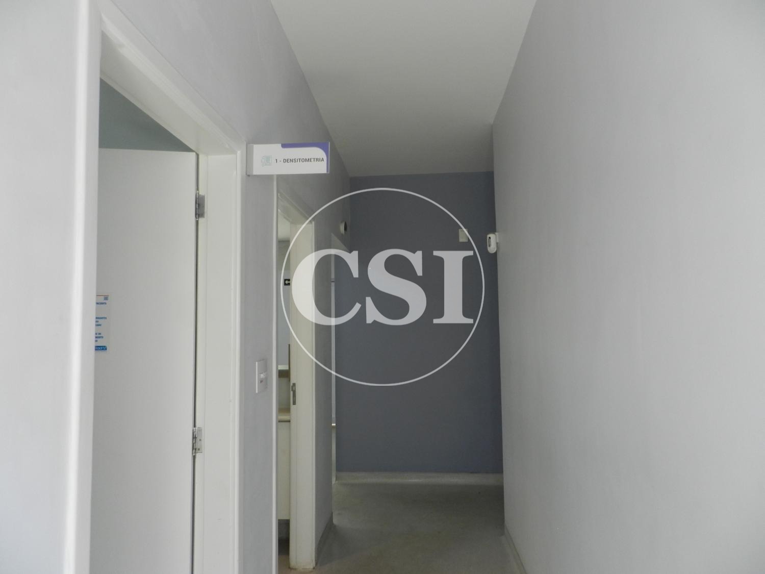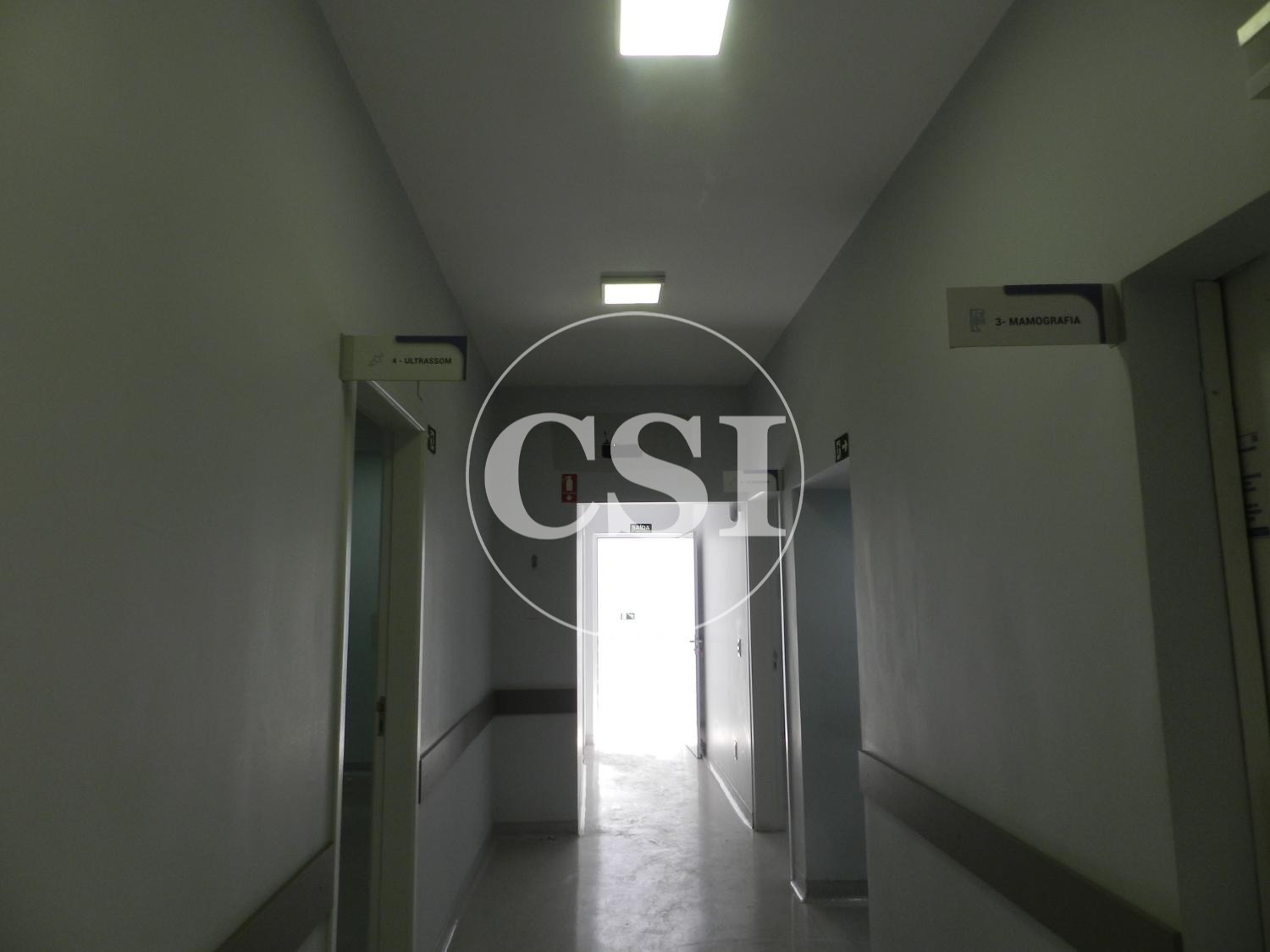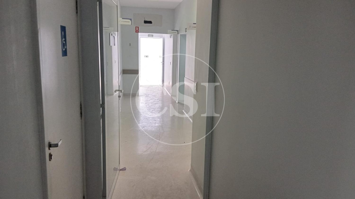 Recepção, ampla sala de espera, 6 salas, 5 banheiros, copa, parte inferior com ampla cozinha, banheiro, quarto de despejo.